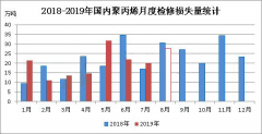 據(jù)統(tǒng)計(jì),2019年7月份國(guó)內(nèi)聚丙烯檢修損失量在20.12萬(wàn)噸,環(huán)比(2019年6月份22.01萬(wàn)噸)減少1.89萬(wàn)噸,降幅在8.58%;...