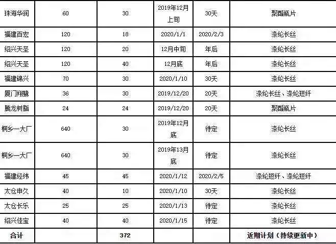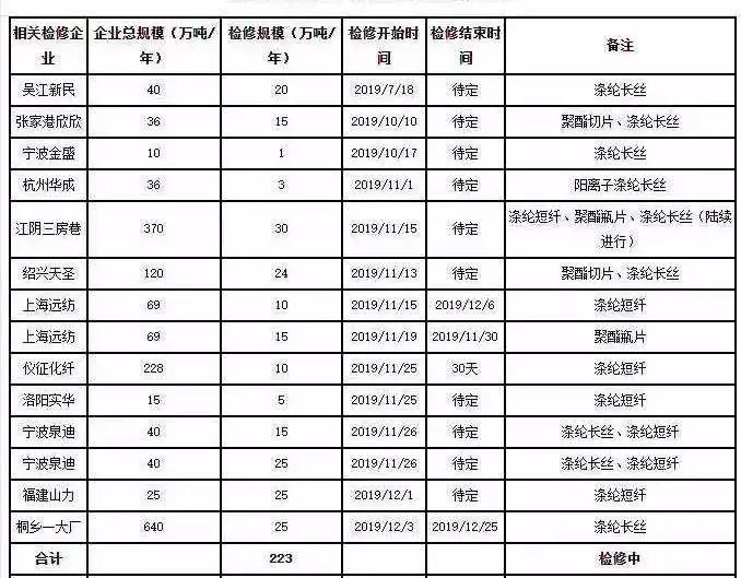 2019年底,聚酯裝置減產(chǎn)檢修or開車投產(chǎn)?