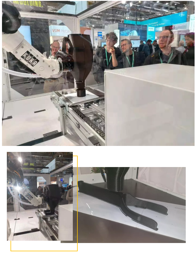 ????????據(jù)悉,伊之密SpaceA機器人柔性增材制造系統(tǒng)制品可適用于汽車、家電、建筑等領(lǐng)域,提供經(jīng)濟高效的生產(chǎn)方法并實現(xiàn)非常規(guī)組件的高質(zhì)量自動化生產(chǎn)。而通過將原料擠出的形式,SpaceA可以直接使用含纖維填充的熱塑性顆粒料進行生產(chǎn)。
