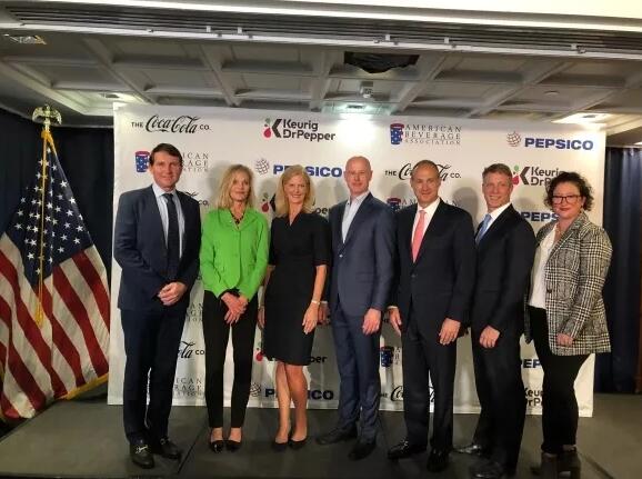 左起:百事可樂飲料北美公司首席執(zhí)行官Kirk Tanner、世界自然基金會(huì)私營部門業(yè)務(wù)高級(jí)副總裁Sheila Bonini、ABA總裁兼首席執(zhí)行官Katherine Lugar、 Keurig Dr Pepper首席商務(wù)官Derek Hopkins、可口可樂北美區(qū)總裁Jim Dinkins、Closed Loop Partners首席執(zhí)行官Ron Gonen;以及The Recycling Partnership首席執(zhí)行官Keefe Harrison。