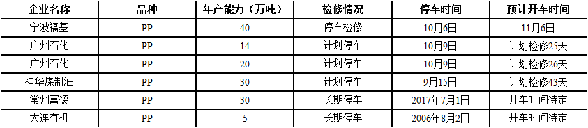 ????????國內(nèi)PP裝置檢修情況匯總