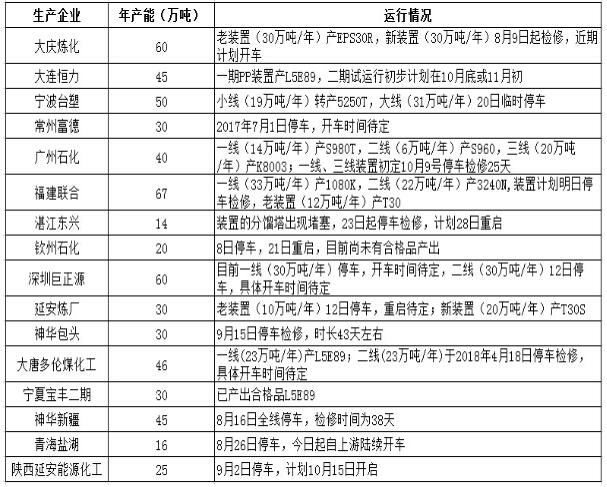近期聚丙烯檢修裝置動(dòng)態(tài)一覽