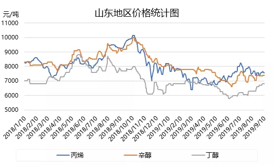 ????????如上圖所示,為丙烯及丁辛醇價(jià)格走勢(shì)圖,雖然丁辛醇呈現(xiàn)上行走勢(shì),但漲勢(shì)趨緩,多是處于消除低價(jià)狀態(tài)。丙烯近期穩(wěn)中下行,但在一定程度上緩解了丁辛醇行業(yè)的虧損壓力,尤其辛醇行業(yè),目前基本在成本線附近。加之辛醇行業(yè)存檢修情況,目前低價(jià)已經(jīng)減少,廠家基本維持在7500元/噸水平。丁醇近期走勢(shì)穩(wěn)健,各廠家報(bào)盤基本在6800元/噸自提。雖然對(duì)DOP、DBP存成本傳導(dǎo),但此次利好支撐作用小于苯酐。