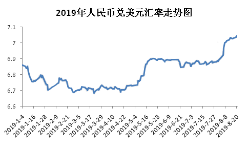 ????????8月5日上午九點十六分左右,離岸美元兌人民幣跌破7關口,最高報7.0392。到了9點32分左右,在岸人民幣兌美元匯率也跌破7關口,最高報7.0262。同時,8月5日人民幣兌美元中間價跌破6.9關口,為2018年12月以來首次。