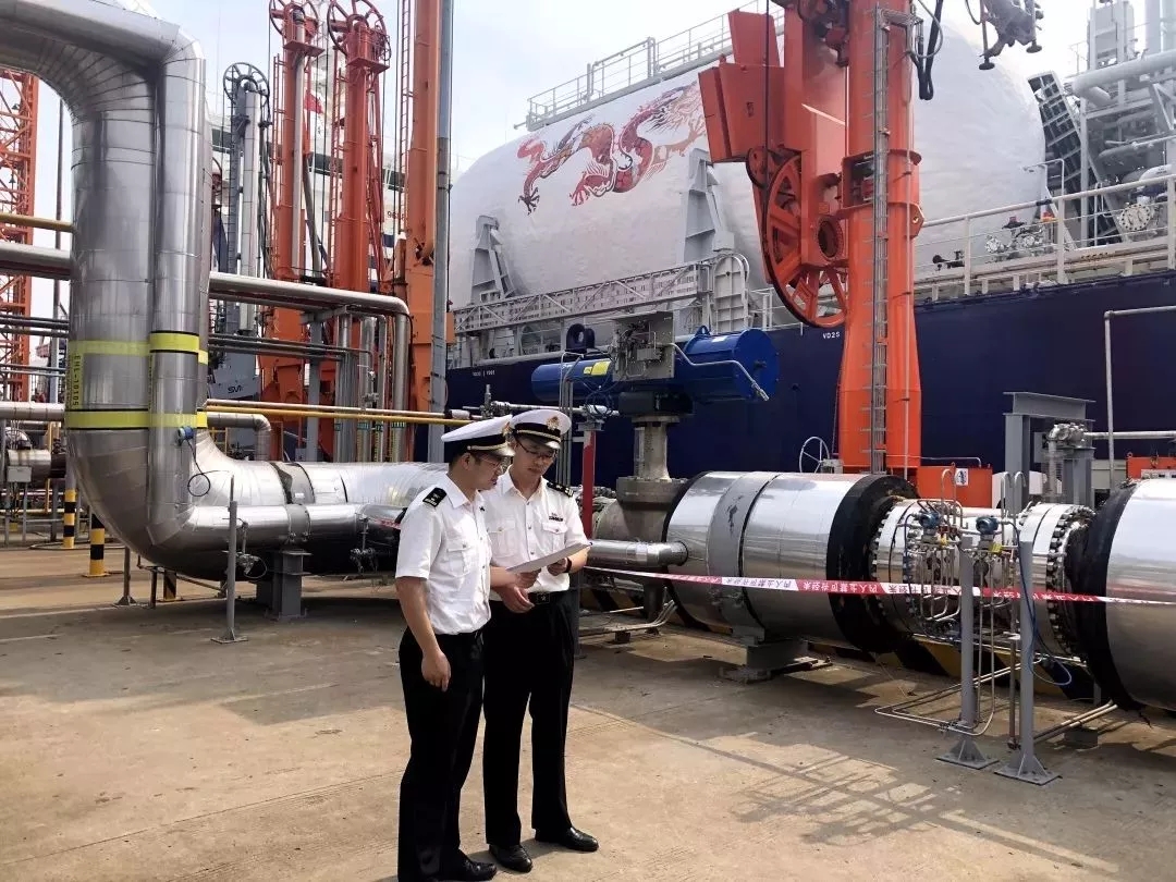 ????????運(yùn)輸船靠泊后,泰州海關(guān)關(guān)員第一時間辦理了單證審核、登輪檢疫等監(jiān)管通關(guān)手續(xù),實(shí)現(xiàn)了“靠畢即檢”和“檢畢即卸”,科學(xué)確定船艙容量計重方案,為烯烴項(xiàng)目落地保駕護(hù)航。