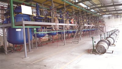 ????????裝置體積45升,占地面積72平方米,這就是全球首套萬噸級乙烯利全流程微反應(yīng)工業(yè)化裝置。5月25日,記者在紹興東湖高科股份有限公司,見到了這個神奇的 “小個子”裝置。
