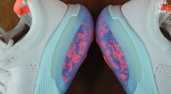 ????????作為這個(gè)技術(shù)的核心,相信大家也看到了,就是鞋底里的無(wú)數(shù)個(gè)彩色小球。耐克表示,他們從 150 多種材料里面尋找,終于找到了這個(gè)名為 TPE 的材料。聽(tīng)起來(lái)挺不容易的,但是想到愛(ài)迪生為了發(fā)明電燈嘗試了 1600 多種材料,還是一個(gè)人在嘗試,所以這么看耐克這么大公司的這個(gè)嘗試也還能接受。
