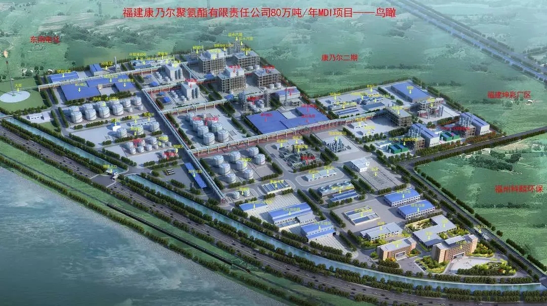 ????????2018年12月20日,福建省生態(tài)環(huán)境廳批復福建康乃爾聚氨酯有限責任公司40萬噸/年MDI項目環(huán)境影響報告書;