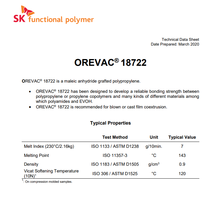 - PP馬來(lái)酸酐改性聚丙烯 法國(guó)阿科瑪 Orevac 18722 共擠薄膜粘接性 物性表, PP馬來(lái)酸酐改性聚丙烯 法國(guó)阿科瑪 Orevac 18722 共擠薄膜粘接性 產(chǎn)品參數(shù),PP馬來(lái)酸酐改性聚丙烯 法國(guó)阿科瑪 Orevac 18722 共擠薄膜粘接性 性能表,PP馬來(lái)酸酐改性聚丙烯 法國(guó)阿科瑪 Orevac 18722 共擠薄膜粘接性 出廠報(bào)告, MSDS,, 物質(zhì)安全資料表, UL黃卡,{ SGS報(bào)告, RoHS, 食品級(jí)認(rèn)證, NSF飲用水標(biāo)準(zhǔn), 產(chǎn)品資料, 產(chǎn)品性能, 出廠報(bào)告, 原廠原包, 代理商, 熱變形溫度, 熔指數(shù), 流動(dòng)系數(shù), 抗沖擊性能、沖擊強(qiáng)度, 低溫韌性、低溫抗沖擊性能, 熔體流動(dòng)系數(shù)、熔體流動(dòng)速率, 加工工藝、加工參數(shù)、加工溫度, 歐盟RoHS 德國(guó)FDA 美國(guó)FDA 日本FDA