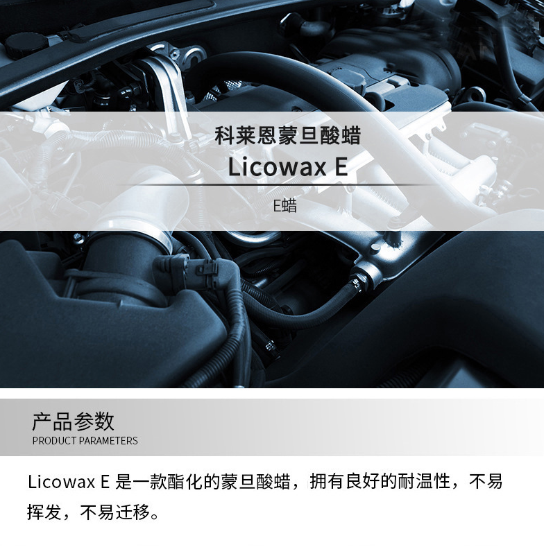 1.科萊恩e蠟是一種硬性晶體蒙旦酯蠟,能產(chǎn)生高光澤,易于皂化和乳化,適用于各種皮革防護劑、乳化上光劑、溶劑型上光蠟;