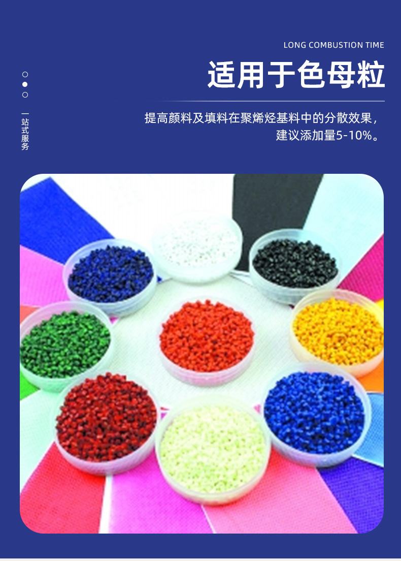 色母粒 提高顏料及填料在聚烯烴基料中的分散效果,建議添加量5-10%。