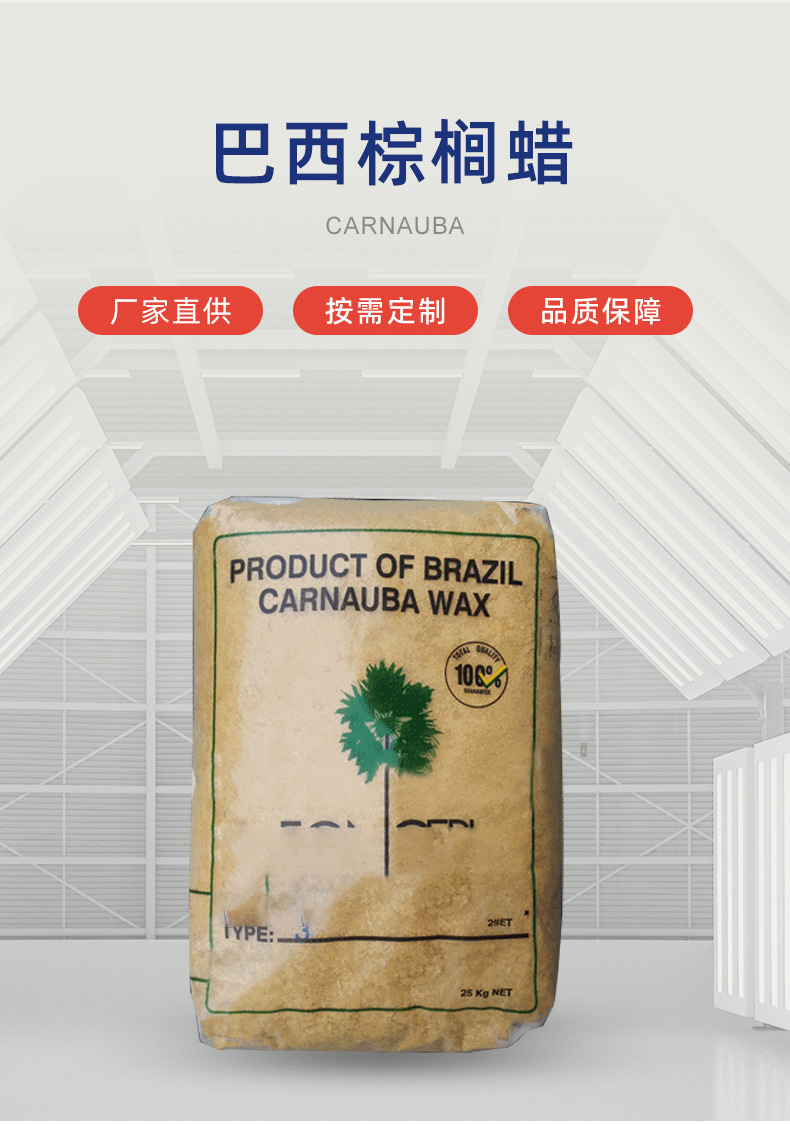 巴西棕櫚蠟質(zhì)地非常堅(jiān)硬,具有極高的光澤,極易乳化,有著良好的保油性,它最大的優(yōu)點(diǎn)是具有其它蠟所沒(méi)有的光澤度和硬度。此外,它具有的拋光特性使其成為皮革等行業(yè)上不可或缺的原料。可應(yīng)用于制造復(fù)寫紙。棕櫚蠟稀薄而黏滯度小,樹脂含量低,涂布均勻,流動(dòng)性能好,制成的復(fù)寫紙性能好。也巴西棕櫚蠟可用于地板蠟和鞋油,具有光澤好、光潔度高、表面沒(méi)有油膩的優(yōu)點(diǎn)。還可用于橡膠防老劑,同時(shí)具有一定的軟化與潤(rùn)滑作用,使膠料易脫模和壓出,使成品外觀平整。