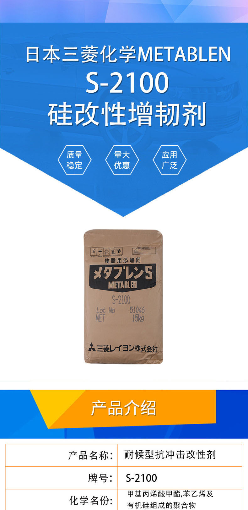 - 抗沖擊改性劑 日本三菱 S-2100 塑料合金 抗沖擊改性劑增韌劑 物性表, 抗沖擊改性劑 日本三菱 S-2100 塑料合金 抗沖擊改性劑增韌劑 產(chǎn)品參數(shù),抗沖擊改性劑 日本三菱 S-2100 塑料合金 抗沖擊改性劑增韌劑 性能表,抗沖擊改性劑 日本三菱 S-2100 塑料合金 抗沖擊改性劑增韌劑 出廠報告, MSDS,, 物質(zhì)安全資料表, UL黃卡,{ SGS報告, RoHS, 食品級認(rèn)證, NSF飲用水標(biāo)準(zhǔn), 產(chǎn)品資料, 產(chǎn)品性能, 出廠報告, 原廠原包, 代理商, 熱變形溫度, 熔指數(shù), 流動系數(shù), 抗沖擊性能、沖擊強度, 低溫韌性、低溫抗沖擊性能, 熔體流動系數(shù)、熔體流動速率, 加工工藝、加工參數(shù)、加工溫度, 歐盟RoHS 德國FDA 美國FDA 日本FDA