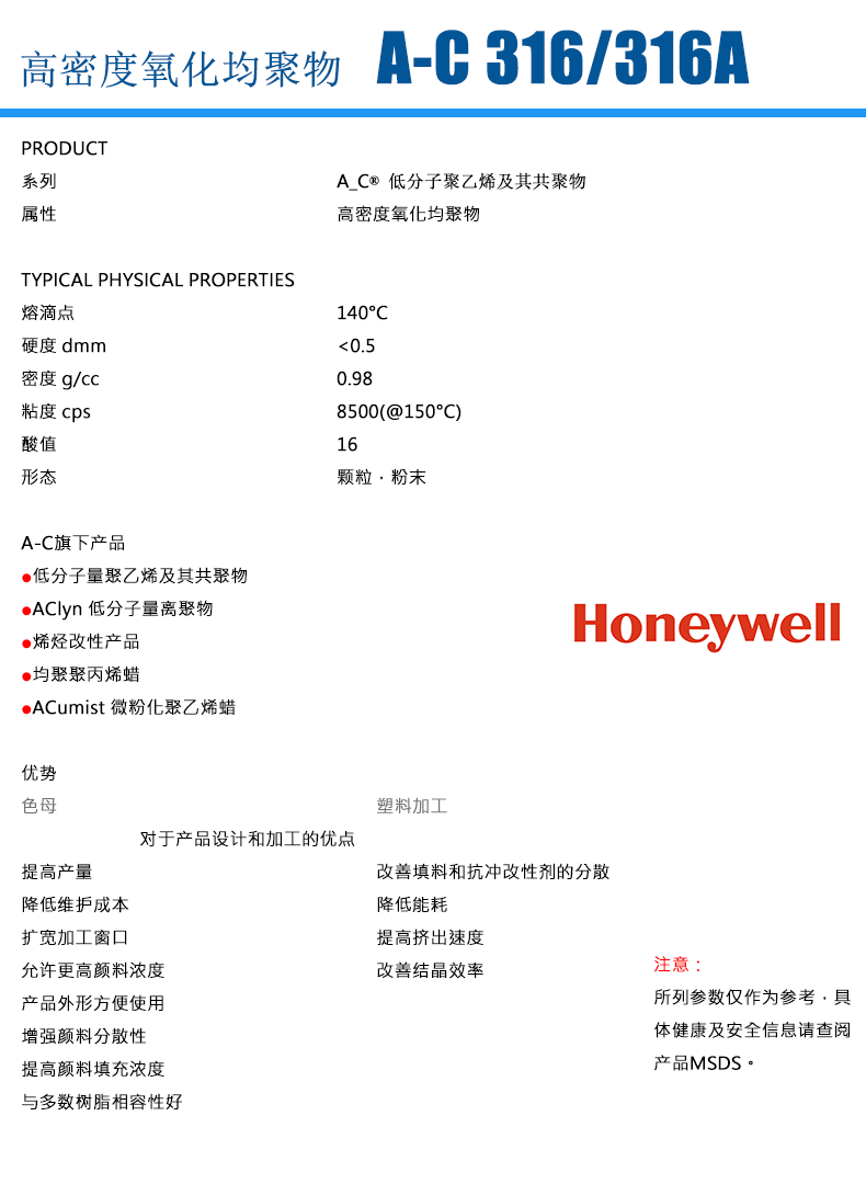 霍尼韋爾的AC-316A(高密度氧化均聚物)