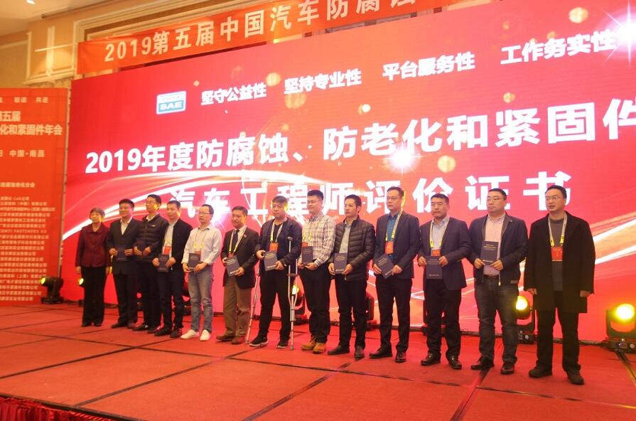 PPG大中華區(qū)一般工業(yè)漆高級(jí)商務(wù)總監(jiān)王華(右四)與PPG中國(guó)區(qū)電泳涂料技術(shù)服務(wù)經(jīng)理歐陽(yáng)澤華(右三)在第五屆中國(guó)汽車防腐蝕老化和緊固件年會(huì)中榮獲高級(jí)工程師專業(yè)證書(shū)