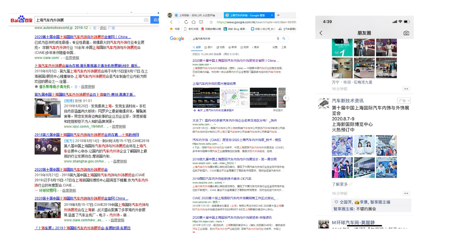 我們已經(jīng)陸續(xù)上線抖音、今日頭條、網(wǎng)易、新浪的信息流廣告,通過精準(zhǔn)用戶畫像讓我們廣告展現(xiàn)給目標(biāo)行業(yè)人士, 目前曝光量達(dá)到了近1000萬次,促進(jìn)展商及觀眾對(duì)CIAIE汽車內(nèi)外飾展會(huì)的全面了解。