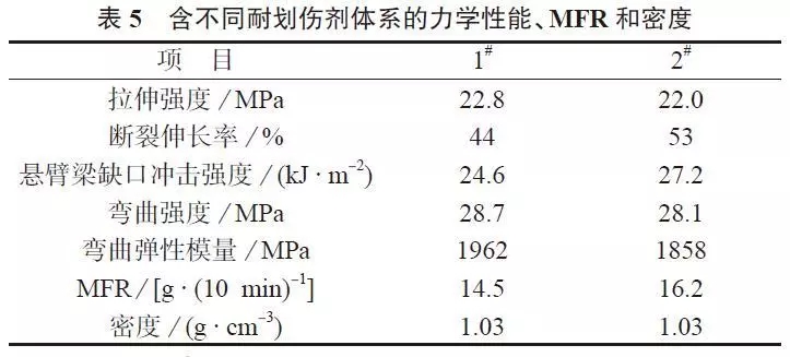 ????????兩種耐劃傷劑在常溫下都使PP具有較好的耐劃傷性能,但有機硅類耐劃傷劑在PP材料熱老化后仍使其保持優(yōu)良的耐劃傷性能,同時在氣味、VOC、霧度具有較大的優(yōu)勢,在韌性和加工性方面也具有一定的優(yōu)勢。