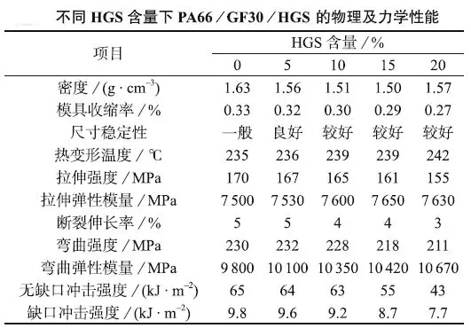 ????????HGS對(duì)增強(qiáng)阻燃PA66性能影響如下