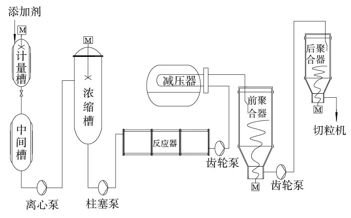 ????????依托PA66連續(xù)聚合生產(chǎn)線(xiàn),通過(guò)添加適量的鈉鹽催化劑SP1,調(diào)整聚合工藝參數(shù),在線(xiàn)提高PA66樹(shù)脂熔體的黏度。