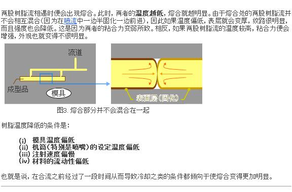 熔合紋在樹脂合流之處有開孔的部分會出現(xiàn)。