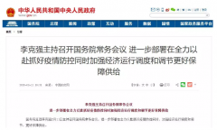 國務(wù)院總理李克強(qiáng)2月11日主持召開國務(wù)院常務(wù)會議,進(jìn)一步部署在全力以赴抓好疫情防控同時,加強(qiáng)經(jīng)濟(jì)運行調(diào)度和調(diào)節(jié),更好保障供給...