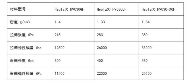 該產(chǎn)品具有優(yōu)異的機械強度與抗沖擊能力,尺寸穩(wěn)定性高、翹曲低,材料性能較進口產(chǎn)品提升30%。以高溫尼龍為基材的Hepla? H9000-XCF系列碳纖維復(fù)合材料,彎曲剛度超過52GPa,彎曲強度高達520MPa,拉伸強度達到360MPa;以PA66為基材的Hepla? H7200-XCF系列拉伸強度達到315MPa。 采用新產(chǎn)品生產(chǎn)的零部件比鋼制零部件輕75%,比鋁合金部件輕40%,可替代大部分金屬,從而為汽車輕量化及其它行業(yè)“以塑代鋼”提供更好的解決方案。