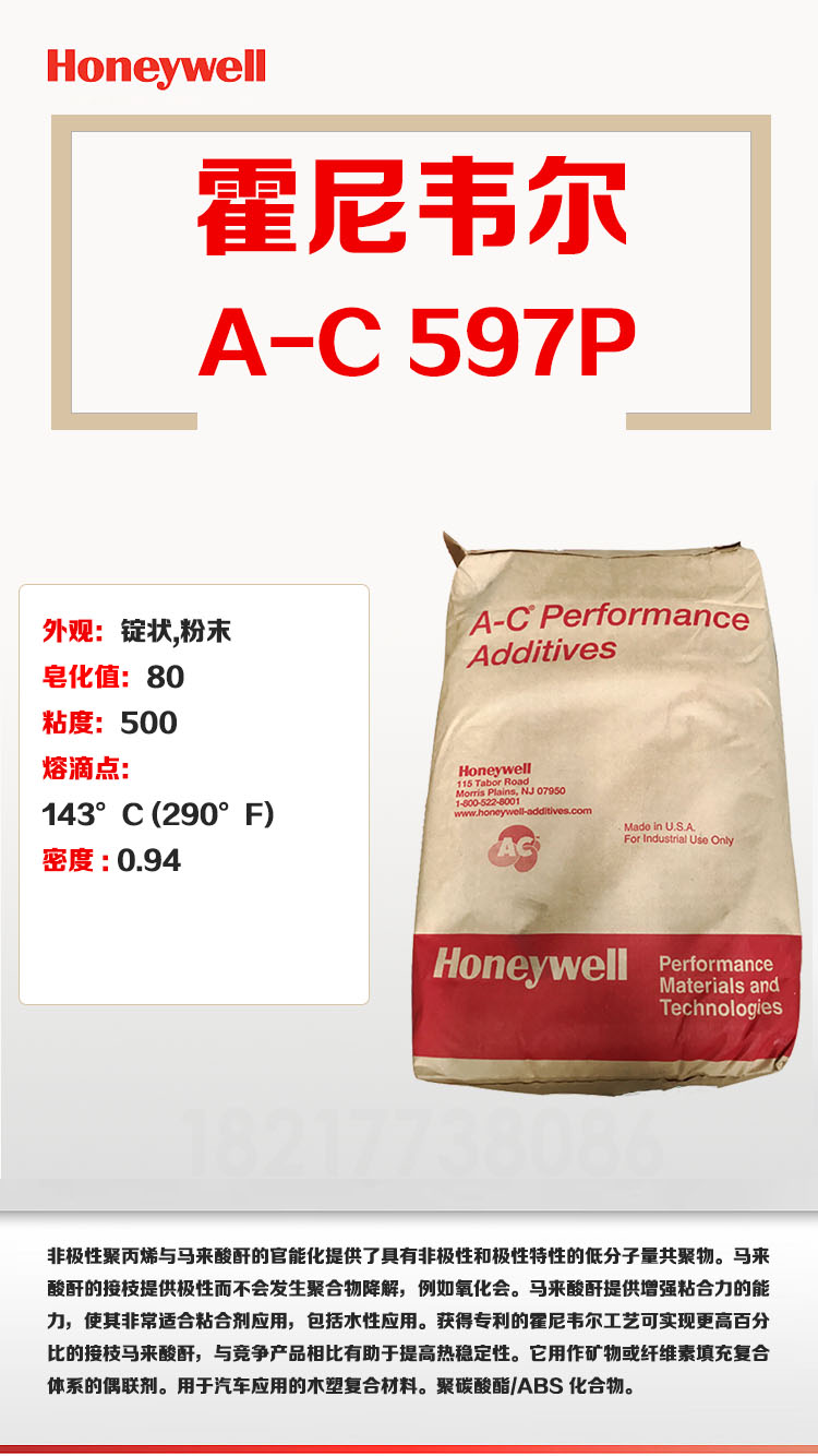 - Honeywell(霍尼韋爾)丙烯馬來(lái)酸酐共聚物597P 物性表, Honeywell(霍尼韋爾)丙烯馬來(lái)酸酐共聚物597P 產(chǎn)品參數(shù),Honeywell(霍尼韋爾)丙烯馬來(lái)酸酐共聚物597P 性能表,Honeywell(霍尼韋爾)丙烯馬來(lái)酸酐共聚物597P 出廠報(bào)告, MSDS,, 物質(zhì)安全資料表, UL黃卡,{ SGS報(bào)告, RoHS, 食品級(jí)認(rèn)證, NSF飲用水標(biāo)準(zhǔn), 產(chǎn)品資料, 產(chǎn)品性能, 出廠報(bào)告, 原廠原包, 代理商, 熱變形溫度, 熔指數(shù), 流動(dòng)系數(shù), 抗沖擊性能、沖擊強(qiáng)度, 低溫韌性、低溫抗沖擊性能, 熔體流動(dòng)系數(shù)、熔體流動(dòng)速率, 加工工藝、加工參數(shù)、加工溫度, 歐盟RoHS 德國(guó)FDA 美國(guó)FDA 日本FDA