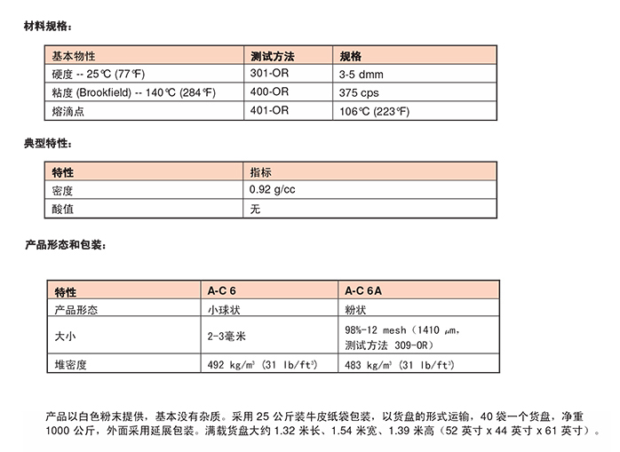 霍尼韋爾低分子量聚乙烯蠟A-C 6A