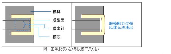 3、在成型條件上,模具溫度偏低且保壓偏大時容易引起脫模不良。