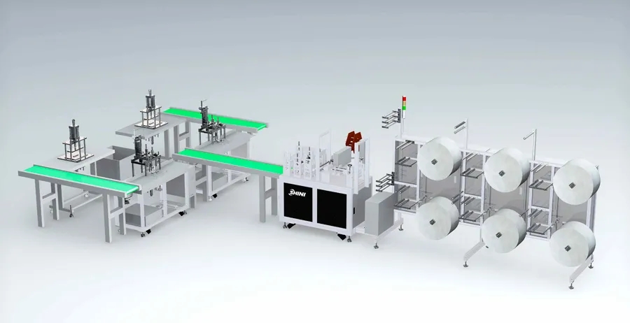 鑒于新型冠狀肺炎疫情在全球的大范圍持續(xù)傳播,為防疫物資的生產(chǎn)帶來了極大的挑戰(zhàn),其中最基本的防護(hù)用品口罩的需求成幾何倍數(shù)的增加。做為一家行業(yè)內(nèi)全球知名的設(shè)備生產(chǎn)商,信易自動(dòng)化事業(yè)處快速反應(yīng),繼推出SMKS全自動(dòng)一拖二平面口罩機(jī)后,全新推出N95/KN95口罩生產(chǎn)設(shè)備,主要用于N95/KN95口罩成型,整卷布料放卷后經(jīng)過滾輪驅(qū)動(dòng)上料,布料通過自動(dòng)上料,鼻梁條整卷牽引開卷,定長(zhǎng)裁切后導(dǎo)入至包邊布料中??谡滞庑瓮ㄟ^超聲模具滾焊,焊接封邊,經(jīng)滾切刀裁切成型,通過滾筒將成型的口罩進(jìn)行輸出,再由人工用超聲波焊接耳帶,最后對(duì)口罩進(jìn)行封邊,標(biāo)準(zhǔn)整套設(shè)備:打片機(jī)x1+封邊機(jī)x2+耳帶機(jī)x2