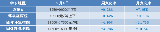 ????????據中宇數據監(jiān)測,8月份以來環(huán)氧樹脂產業(yè)鏈上整體呈現出下跌態(tài)勢,其中環(huán)氧氯丙烷市場月內更是暴跌暴漲,8月整體呈現出下跌走勢,其對環(huán)氧樹脂成本面有明顯拖累,而環(huán)氧樹脂市場亦跟隨其整體下行。雙酚A市場亦受到環(huán)氧氯丙烷的壓制走弱。