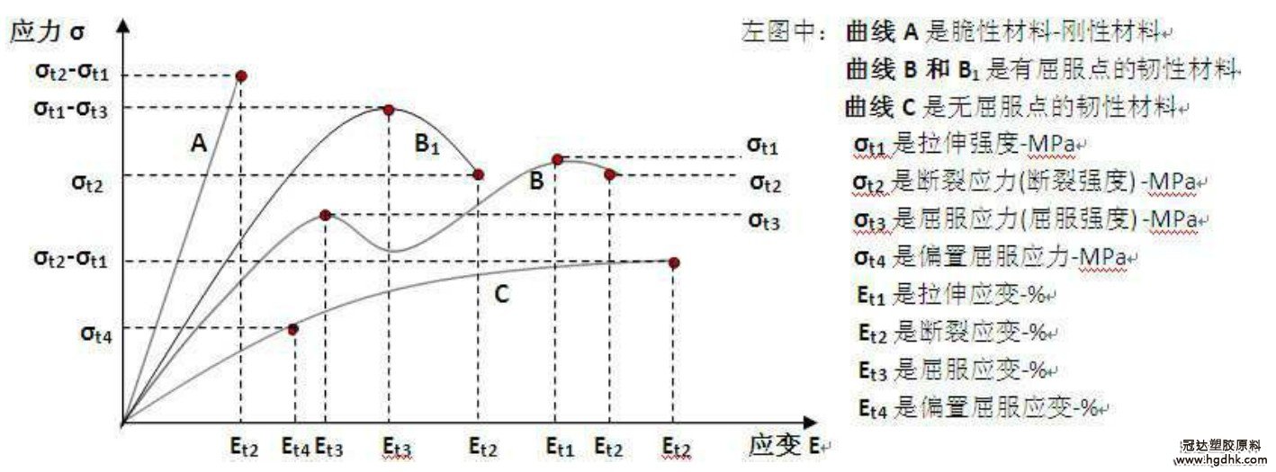 曲線 B1 是常見的曲線,屈服強(qiáng)度等于拉伸強(qiáng)度。我們給客戶測(cè)試時(shí)常出現(xiàn)如此曲線。高韌性的材料其拉伸強(qiáng)度高于屈服應(yīng)力,曲線 B 就是拉伸強(qiáng)度高于屈服應(yīng) 力,我們?cè)诮o供應(yīng)商測(cè)試加了沖擊改性劑的 PS 材料時(shí),就出現(xiàn)了曲線 B 的現(xiàn)象。該材料比 PS 的沖擊強(qiáng)度提高許多,是高韌性材料了。 在 GB/T9341-2000 塑料彎曲試驗(yàn)方法中:只有具有線性應(yīng)力-應(yīng)變特性的材料。其彎曲性能才能作為工程設(shè)計(jì)的依據(jù),而非線性材料的彎曲性能僅是公稱值。 對(duì)于脆性材料,即難于作拉伸試驗(yàn)的材料,最好采用彎曲試驗(yàn)。