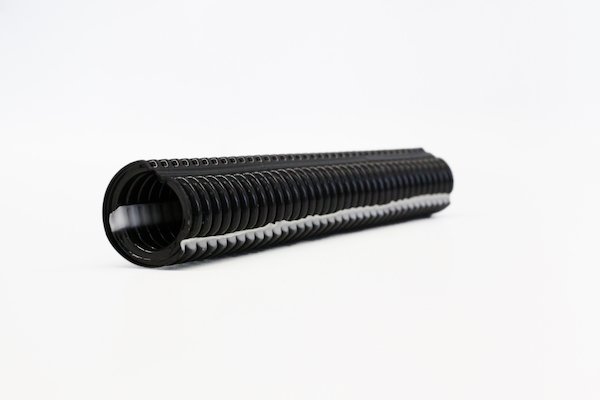 ????????柔性電纜管理系統(tǒng)的新型Polyflex波紋管,特別是用于車輛制造中,標(biāo)志著Schlemmer Group對(duì)TPE組件的要求已經(jīng)提高。為了避免產(chǎn)生尖銳的邊緣,并使狹縫波紋管安裝速度加快,產(chǎn)品開(kāi)發(fā)人員的設(shè)計(jì)旨在通過(guò)共擠出將PA和TPE結(jié)合在一起。