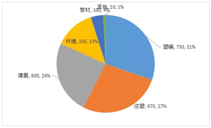 ????????國(guó)內(nèi)聚丙烯主要用于塑編、注塑、薄膜、纖維、管材等領(lǐng)域。