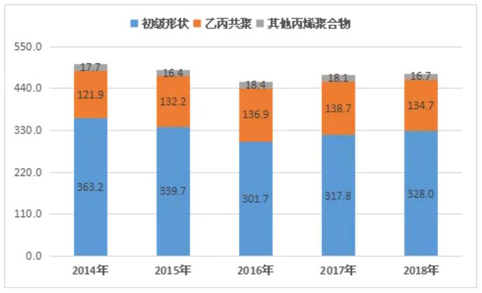 ????????近幾年,一方面國(guó)內(nèi)聚丙烯產(chǎn)能大幅增長(zhǎng),另一方面中東天然氣和石油伴生氣等濕氣資源富裕,加上美國(guó)頁(yè)巖氣革命,不斷推進(jìn)裂解原料輕質(zhì)化,導(dǎo)致丙烯增長(zhǎng)緩慢,聚丙烯新增產(chǎn)能不多。在此情況下,近年來(lái)我國(guó)聚丙烯進(jìn)口量穩(wěn)中有降,進(jìn)口依存度快速下降,由十多年前的超過(guò)30%下降到不足20%。2014—2018年中國(guó)聚丙烯進(jìn)口量變化詳見(jiàn)圖3。