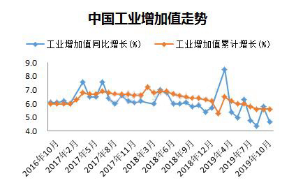 ????????國際統(tǒng)計局最新公布10月份數(shù)據(jù)顯示經(jīng)濟持續(xù)下行壓力仍舊較大。2019年10月份,規(guī)模以上工業(yè)增加值同比實際增長4.7%(以下增加值增速均為扣除價格因素的實際增長率),比9月份回落1.1個百分點。從環(huán)比看,10月份,規(guī)模以上工業(yè)增加值比上月增長0.17%。1—10月份,規(guī)模以上工業(yè)增加值同比增長5.6%。