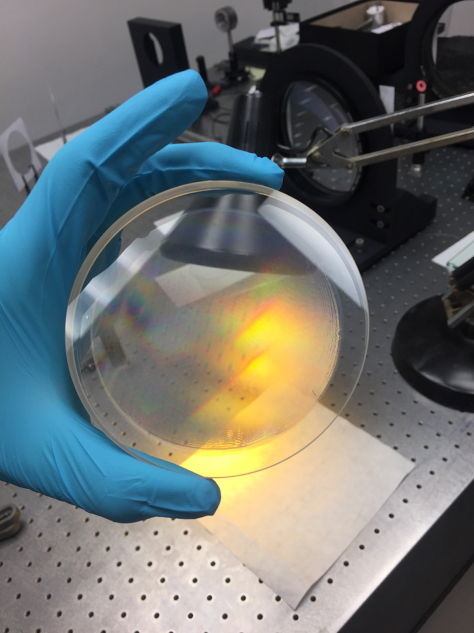 ????????意大利國家天體物理學研究所(INAF)正在研究基于體積全息圖的全息光學元件,該全息光學元件可以非常有效地將恒星發(fā)出的光分解為不同顏色,以便進行光譜研究。在與材料制造商科思創(chuàng)的多年合作中,其量身定制的Bayfol?HX光敏聚合物膜被證明是能幫助高性能望遠鏡穩(wěn)定重復地作出高效體積全息圖的理想選擇,適用于每種截然不同的新穎光譜儀。這樣就可以使用適當?shù)募す馄毓庠O(shè)置下,將周期性折射率圖案靈活地刻入Bayfol?HX薄膜的體積中。如此,星光就可以被非常有效地衍射。與現(xiàn)有的棱鏡相比,Bayfol?HX薄膜能將星光更有效地分離成其光譜分量。