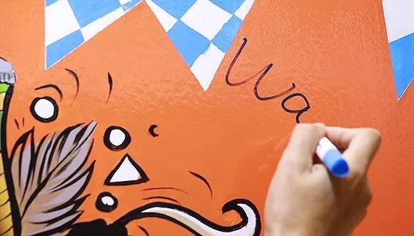 ????????涂鴉墻不僅對顏料有效,還不懼怕各種粘貼物,因?yàn)槟z水很難附著在這種墻面上。
